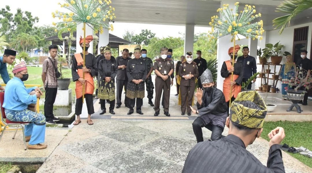 Hal tersebut disampaikannya ketika saat menyambut kunjungan Kepala Kejaksaan Tinggi ( Kejati ) Riau , Dr. Jaja Subagja , SH , MH beserta jajaran Kejati Riau ke Kabupaten Indragiri Hilir. Kedatangan Kejati Riau tersebut disambut dengan adat Melayu yang di awali dengan pemasangan tanjak , pengalungan bunga di lanjutkan dengan tepuk tepung tawar , di rumah dinas Bupati Inhil , Selasa ( 02/08/2022 ) siang.