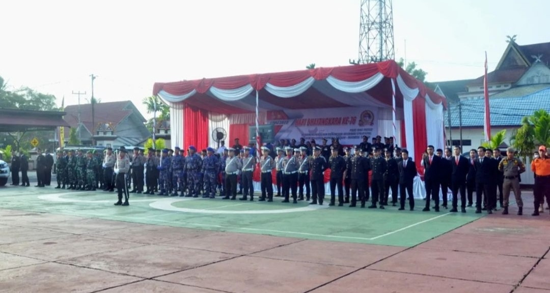 Apel Peringatan HUT Bhayangkara ke - 76 yang bertemakan Polri yang presisi mendukung pemulihan ekonomi dan reformasi struktural untuk mewujudkan Indonesia tangguh - Indonesia tumbuh dipimpin oleh Presiden RI Joko Widodo selaku Inspektur upacara dengan diikuti seluruh jajaran Polda , Forkopimda dan Polres se Indonesia dengan . Dalam amanatnya Presiden RI Joko Widodo atas nama pribadi , Bangsa dan Negara menyampaikan ucapan selamat hari Bhayangkara ke - 76 dengan harapan Polri semakin maju.