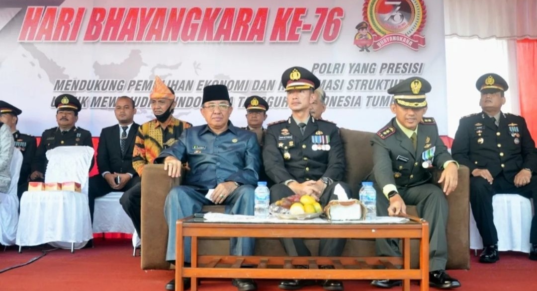 " Selamat HUT Bhayangkara ke - 76 , semoga sinergisitas antara Polri dan TNI dengan jajaran Pemda Indragiri Hilir tetap terjaga dan kedepannya dapat lebih ditingkatkan lagi terutama didalam mengatasi penyelesaian pandemi covid 19 serta kamtibmas khususnya diwilayah Kabupaten Indragiri Hilir " , tutup Bupati . (Gallery)