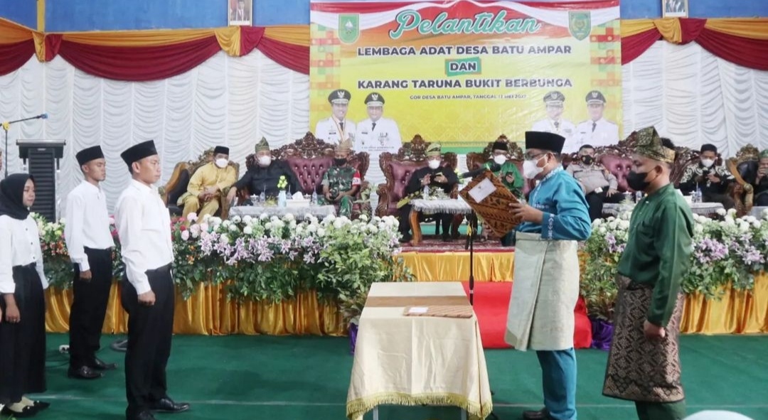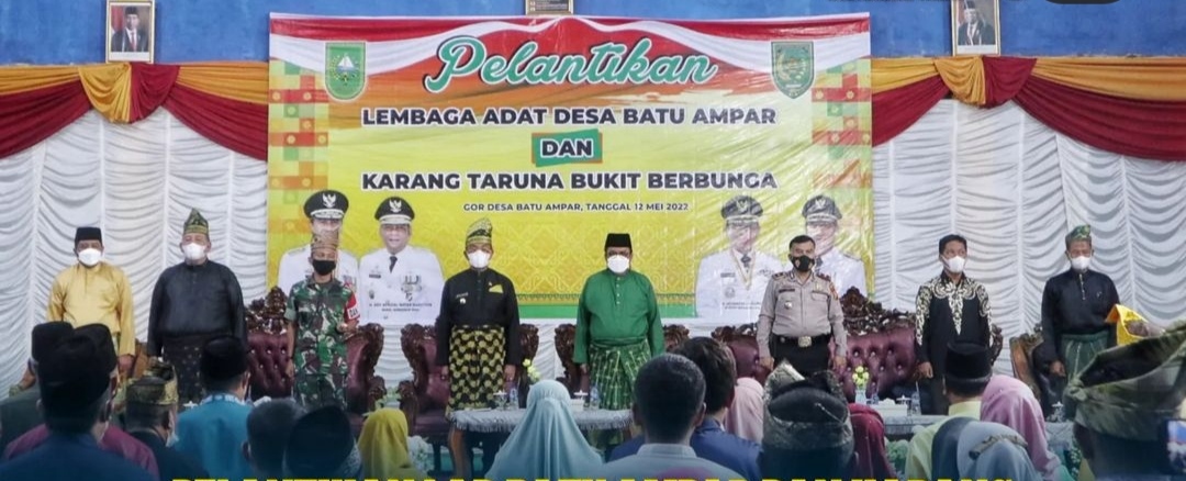 Drs . HM . Wardan , MP menghadiri Pelantikan Lembaga Adat Desa ( LAD ) Batu Ampar dan Karang Taruna Bukit Berbunga di Gor Desa Batu Ampar Kecamatan Kemuning, Kamis (12/05/2022 ).