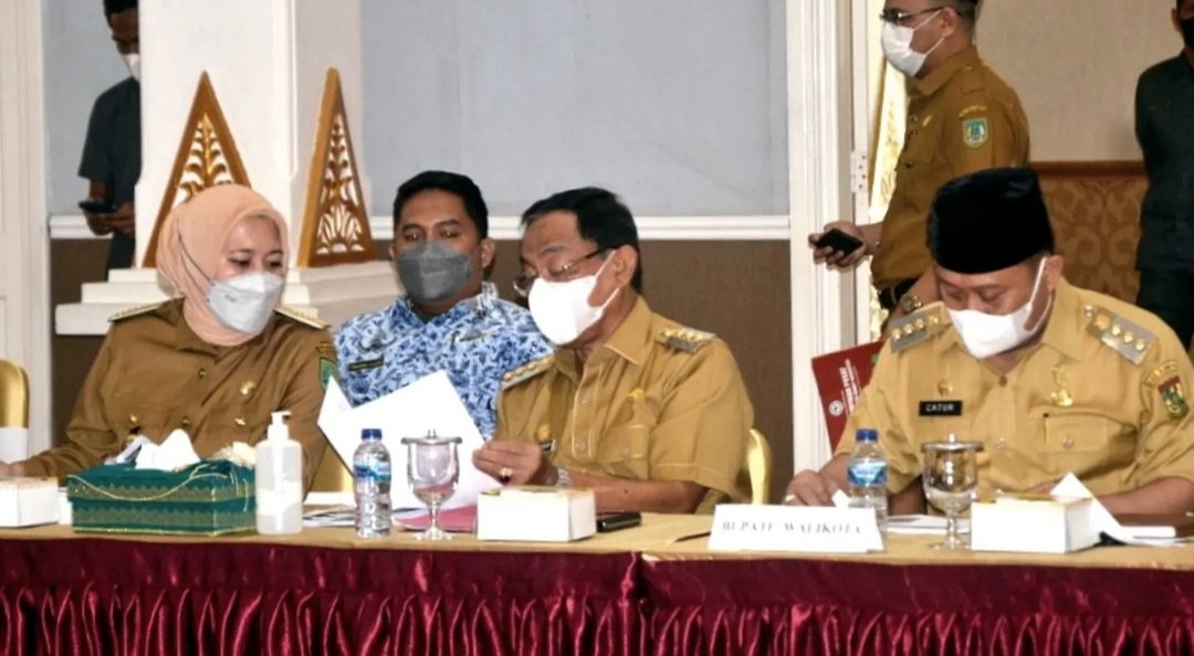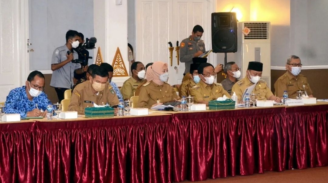 Bupati Indragiri Hilir H. M. Wardan menghadiri Rapat Koordinasi Pasca Kebijakan Pemerintah Terhadap Larangan Ekspor CPO antara pemerintah dengan perwakilan pengusaha dan petani kelapa sawit serta stake holder terkait, Selasa (17/05/2022).