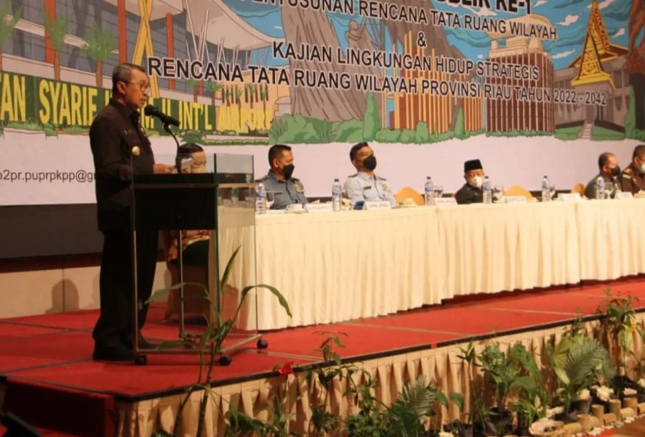 Gubernur Riau Drs.Syamsuar , M.Si dalam sambutannya gubernur mengatakan konsultasi publik ini merupakan sarana dialog untuk menjaring seluruh informasi , saran maupun masukan dari berbagai pihak guna menjadi pertimbangan dalam penyempurnaan konsepsi rencana yang telah disusun.