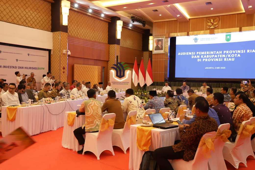 JAKARTA – Bupati Indragiri Hilir (Inhil), Herman, melakukan audiensi bersama Menteri Investasi/Kepala Badan Koordinasi Penanaman Modal (BKPM) Republik Indonesia, Rosan Perkasa Roeslan, di Jakarta, Senin (5/5/2025). Pertemuan ini merupakan bagian dari kunjungan kerja kepala daerah se-Provinsi Riau yang dipimpin oleh Gubernur Riau, Abdul Wahid.
