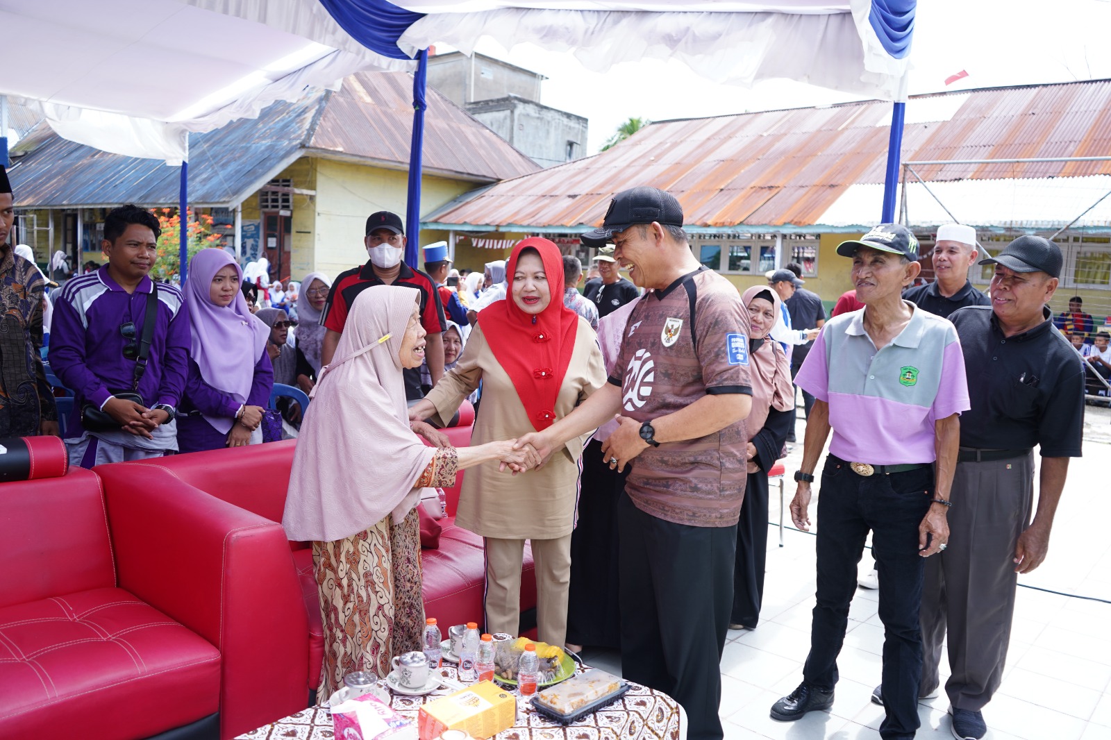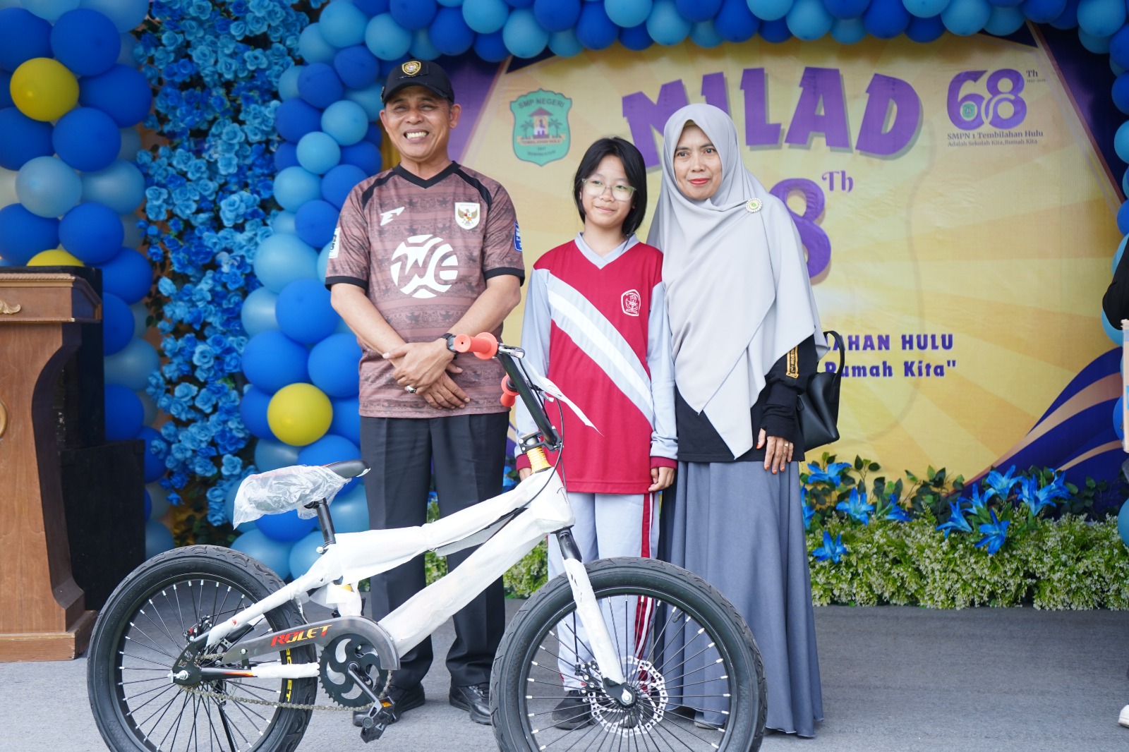 Bupati Inhil Potong Tumpeng dan Serahkan Door Prize Pada Milad SMPN 1 Tembilahan Hulu