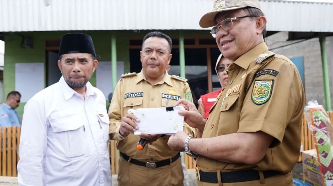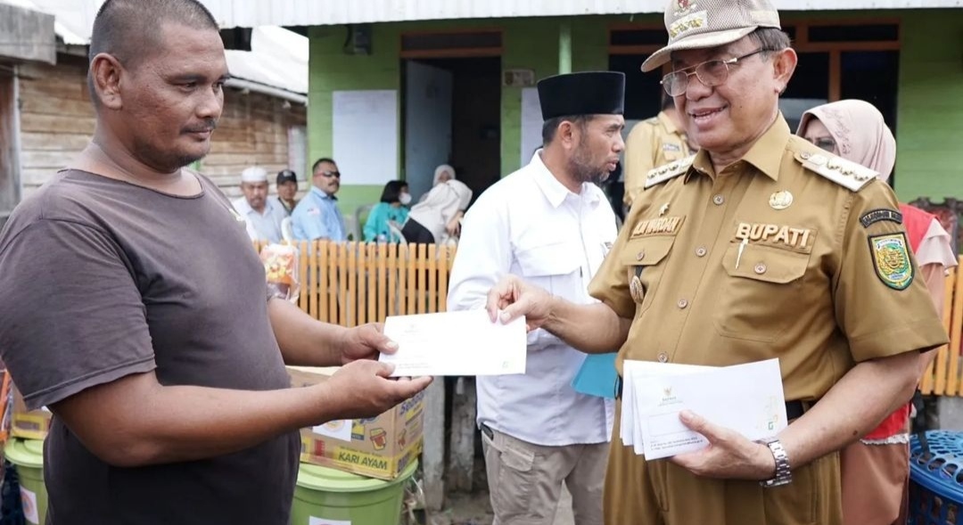 Bupati Inhil Tinjau dan Serahkan Bantuan Longsor di Kuala Enok