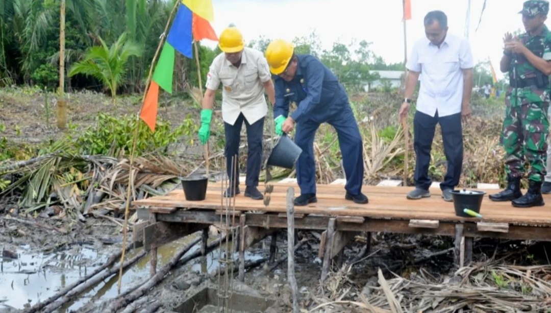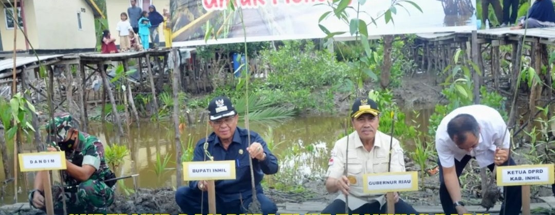 Didampingi Bupati Inhil, Gubri Letakkan Batu Pertama RLH dan Tanam Mangrove