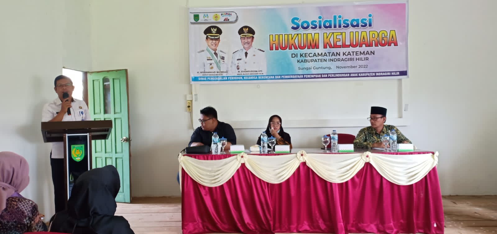 Dinas Pengendalian Penduduk, Keluarga Berencana, dan Pemberdayaan Perempuan dan Perlindungan Anak (DP2KBP3A) Kabupaten Indragiri Hilir menggelar sosialisasi hukum keluarga di Kecamatan Kateman, Selasa (8/11/22)
