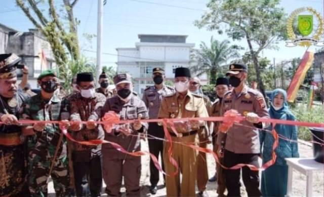 Acara launching Rumah Kampung Restorative Justice ini ditandai dengan pemotongan pita dan pembukaan papan nama oleh HM . Wardan yang didampingi unsur Forkopimda Kabupaten Inhil .
