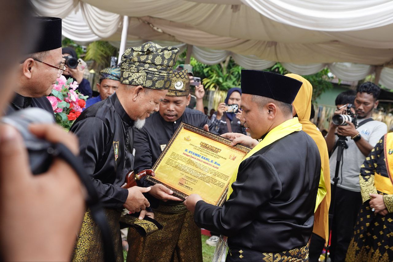 Pada kesempatan tersebut, Gubernur juga menyerahkan gelar adat kepada sejumlah tokoh. Ia berpesan bahwa gelar bukanlah ajang kemegahan, melainkan amanah untuk menjaga nilai-nilai luhur serta menjadi teladan.