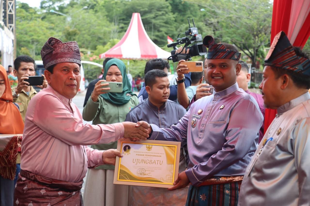 Rokan Hulu - Dalam rangka memperingati Hari Ulang Tahun (HUT) Kabupaten Rokan Hulu (Rohul) ke 25 Tahun, Pemerintah Kabupaten (Pemkab) Rohul menggelar upacara peringatan di halaman Kantor Bupati Rohul, Sabtu (12/10/2024).