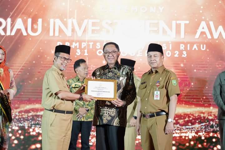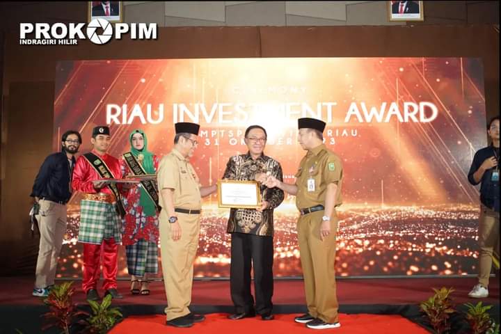 Indragiri Hilir - Pemerintah Kabupaten Indragiri Hilir meraih penghargaan Riau Investment Award Peringat 1 atas capaian serapan tenaga kerja dan peringkat 2 atas realisasi investasi Kabupaten Kota Se-Provinsi Riau, Selasa (31/10).