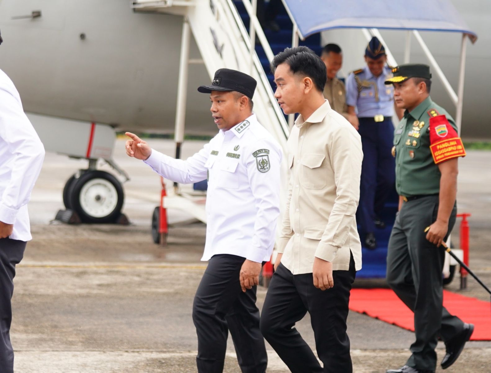 Kunjungan kerja Wapres Gibran Rakabuming Raka bersama rombongan diawali dengan mengunjungi Lanud Roesmin Nurjadin Pekanbaru pukul 09.00 WIB.