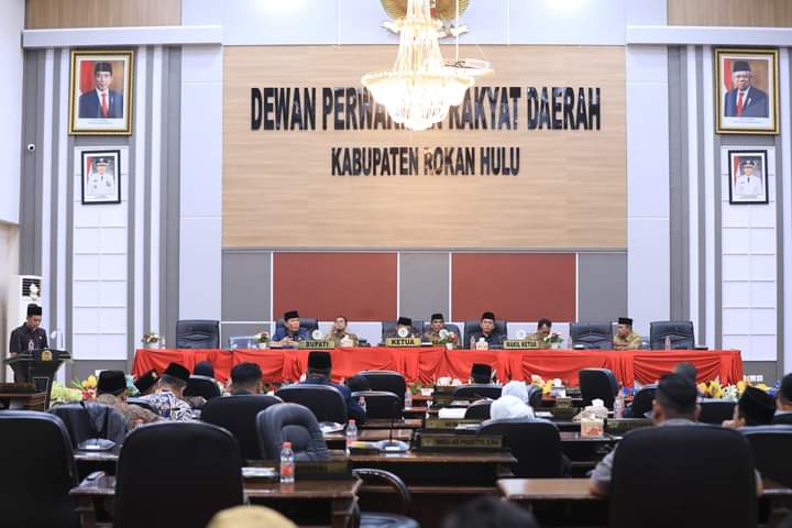 Rohul - Menindak lanjuti Pembahasan Rancangan Peraturan Daerah (Ranperda) tentang Perubahan Anggaran Pendapatan Belanja Daerah (APBD) Kabupaten Rokan Hulu (Rohul) Tahun Anggaran 2024, Bupati bersama DPRD Rohul laksanakan Rapat Paripurna Penyampaian Laporan DPRD atas Ranperda APBD-P Tahun 2024 sekaligus mengambil keputusan yang dilaksanakan di Ruang Rapat Paripurna DPRD Rohul, Senin (30/09/2024).