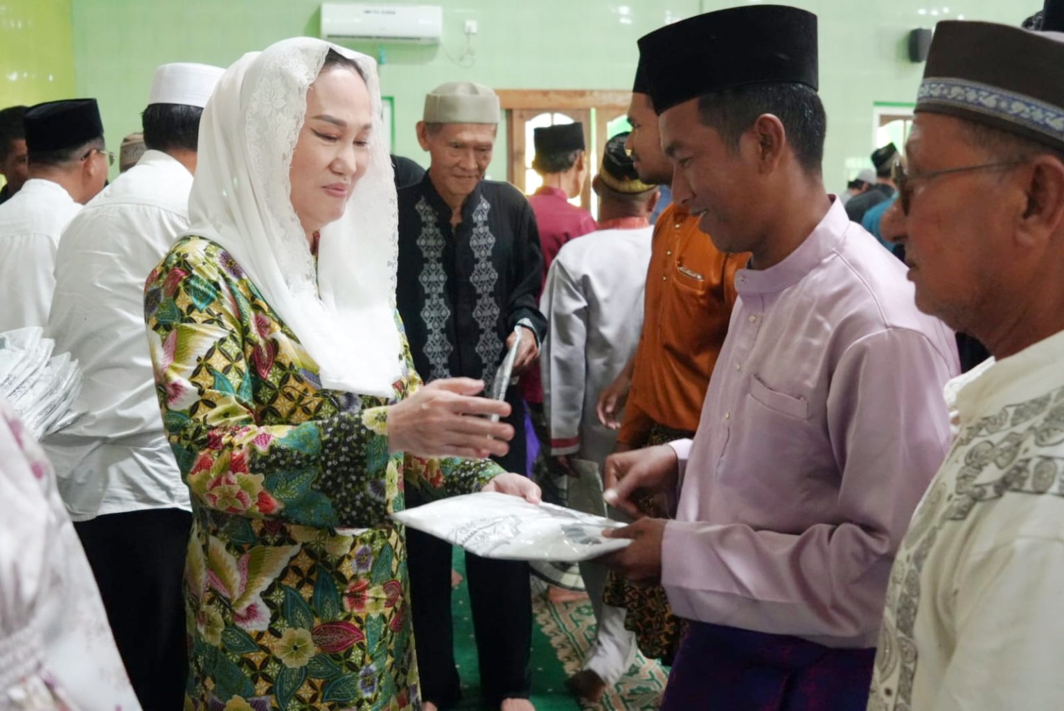 Perhatian pemerintah daerah tidak hanya terbatas pada kebutuhan pokok. Dalam kesempatan tersebut, turut dibagikan perlengkapan ibadah berupa baju koko bagi jamaah laki-laki dan jilbab bagi jamaah perempuan yang memadati masjid.