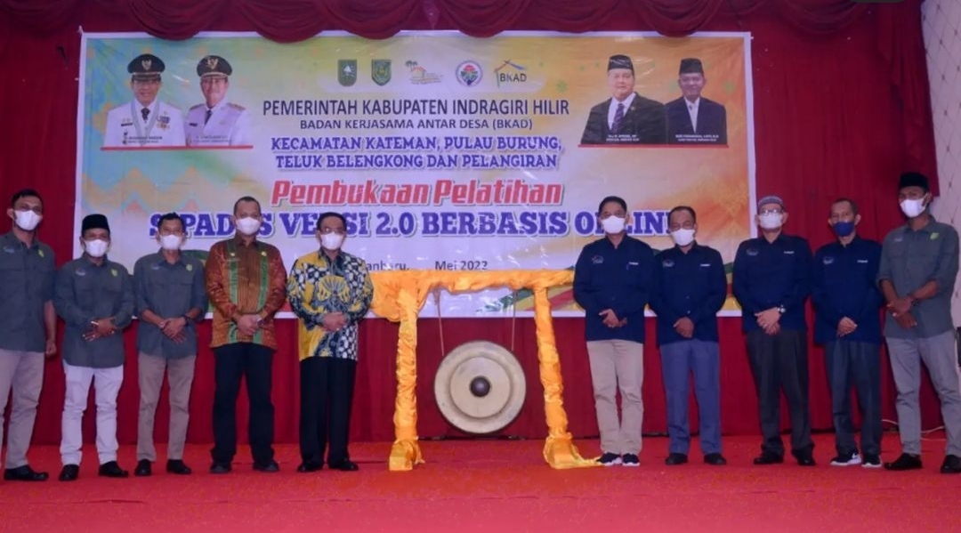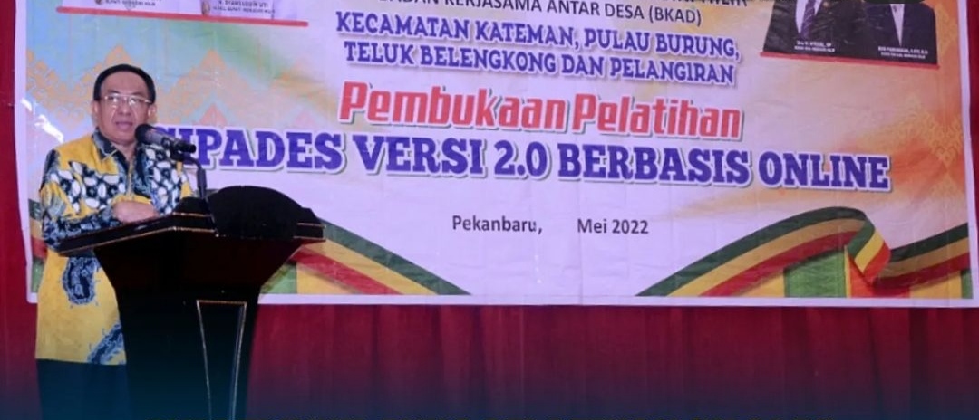 Bupati Indragiri Hilir H. M. Wardan membuka pelatihan Sistem Pengelolaan Aset Desa ( Sipades ) Versi 2.0 berbasis online yang diselenggarakan Badan Kerjasama Antar Desa ( BKAD ) Kec . Kateman , Pulau Burung , Teluk Belengkong dan Pelangiran di Ballroom Hotel New Hollywood Pekanbaru, Senin (16/05/2022).