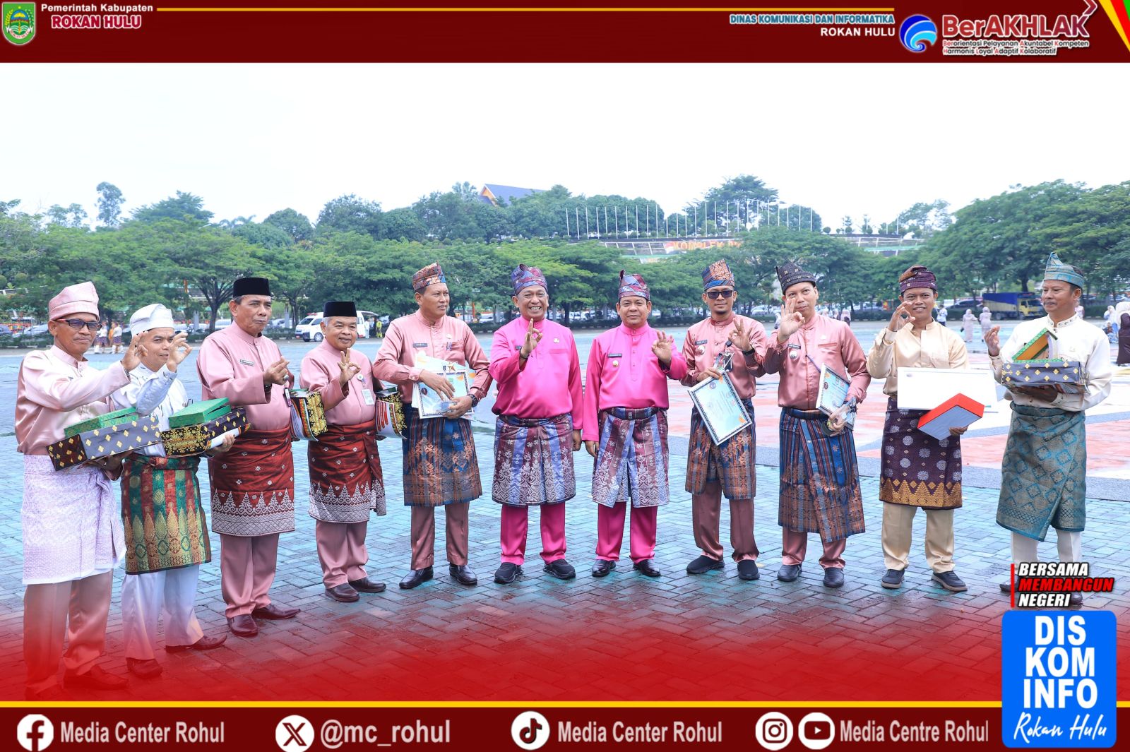 Upacara yang dimulai dengan Parade Bendera Kebesaran Lima Luhak dan Simbol Kecamatan di Rohul ditutup dengan pemberian penghargaan kepada Subaryono Juara 1 Paramedik Veteriner tingkat nasional, Tim Pencak Silat Korpri Rohul pada ajang Pornas ke-17 meraih 1 perak dan 1 perunggu, Pemberian SK Pensiun, dan pemberian piagam penghargaan untuk terbaik evaluasi kinerja Kecamatan Tahun 2025. galeri