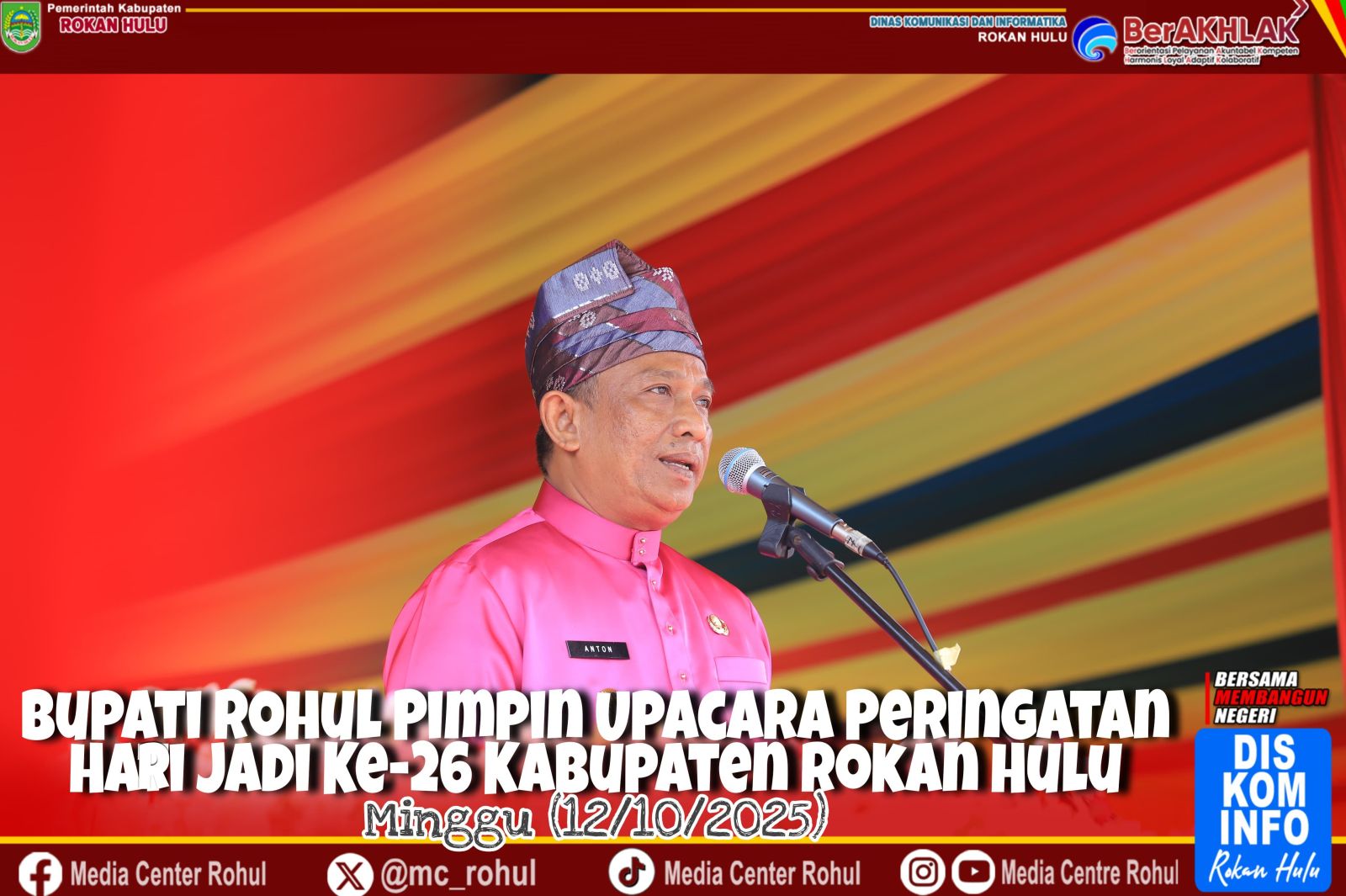 Bupati menegaskan Selamat Hari Jadi Kabupaten Rokan Hulu ke-26, mari jaga kebersamaan, perkuat persaudaraan dan wujudkan semangat "Harmoni Dalam Keberagaman, Maju Bersama Untuk Rokan Hulu".
