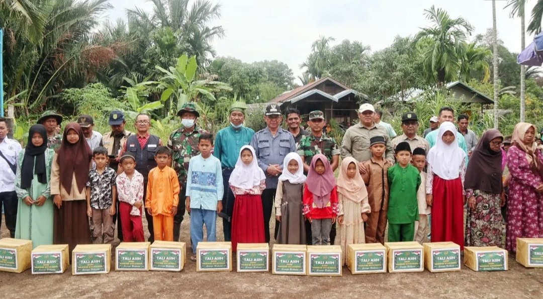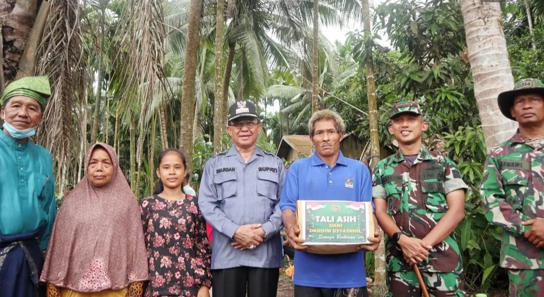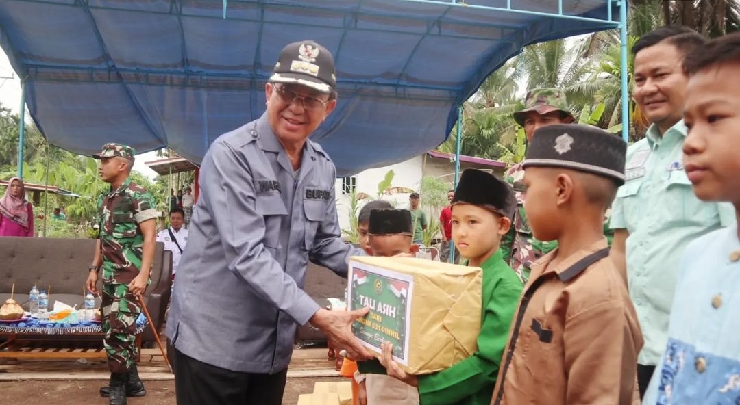 Dalam kesempatan itu juga , Bupati HM Wardan bersama Dandim 0314 / Inhil Letkol Arh M Nahruddin Rhosid menyerahkan 16 bingkisan paket tali asih dari Kodim 0314 / Inhil kepada masyarakat Desa Teluk Sungka dan Desa Sungai Iliran.